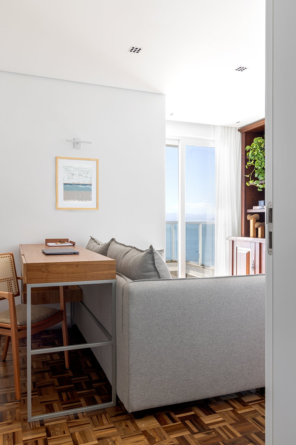 Sofisticação atemporal com vista para o marLocalizado em Florianópolis, o Apartamento MG foi inteiramente reformulado pela VK Arquitetos com o objetivo de valorizar a luz natural, a vista deslumbrante e a elegância discreta de cada detalhe. A paleta neutra contrasta com materiais naturais como madeira, linho e pedra, criando um ambiente acolhedor, funcional e sofisticado. |
